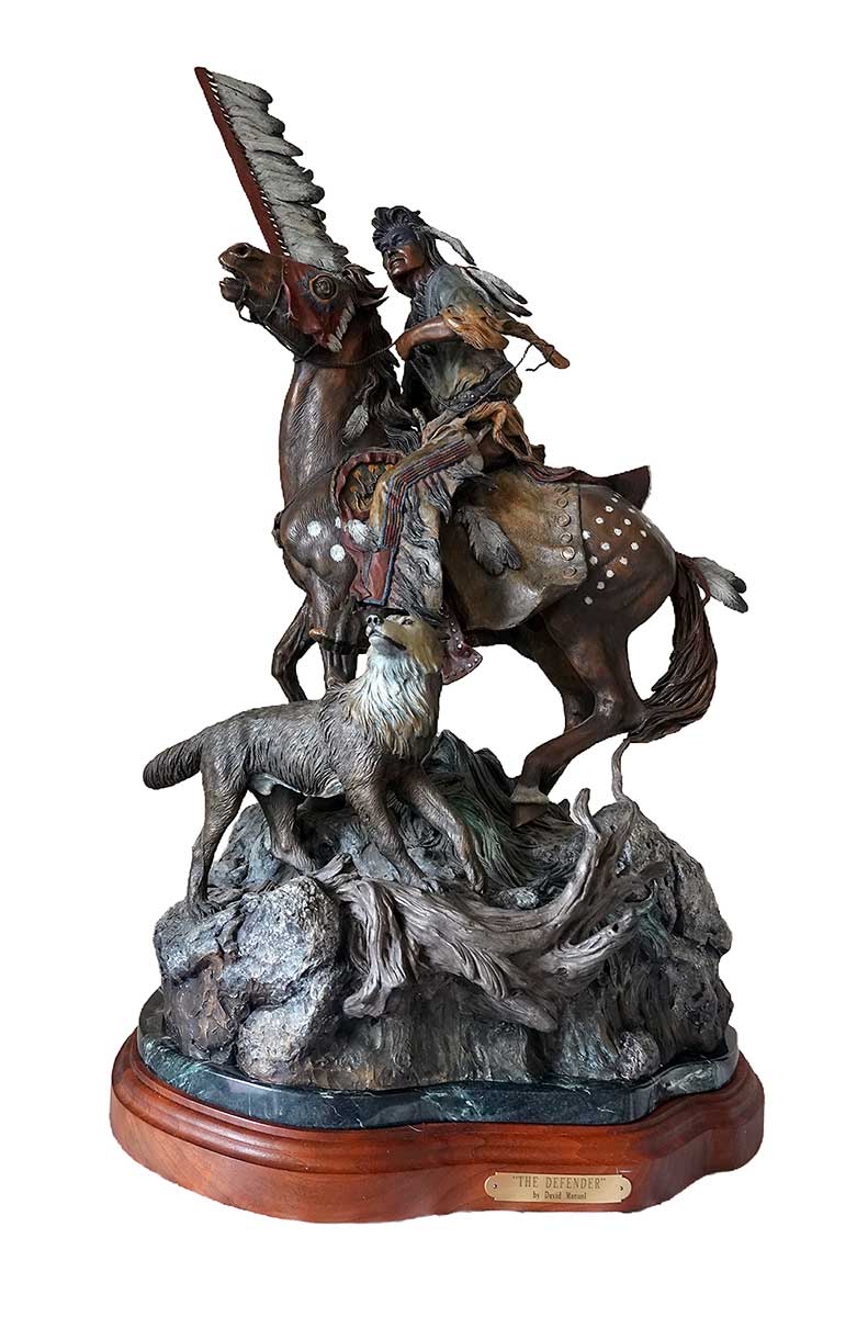 The world of bronzes has been very good to David. In the 1980s he had the honor of many commissions, among these three monuments of JOHN WAYNE. This gained him the title of “Authorized Sculptor” for Wayne Enterprises. Later in the ’80s, David was chosen the Official Sculptor for the “UNITED STATES MARSHALS BICENTENNIAL.” This monument previously on display in the founder’s wing at the Cowboy Hall of Fame, is now placed at the Department of Justice in Washington D.C. A smaller replica of this bronze has found its home at the White House in Washington D.C.