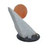 Sun on the Mountain carved by sculptor-artist Anna Lee Harris – Marble with Utah translucent orange Alabaster sun mounted on granite base, accompanied by various natural crystals and raw or polished stones.