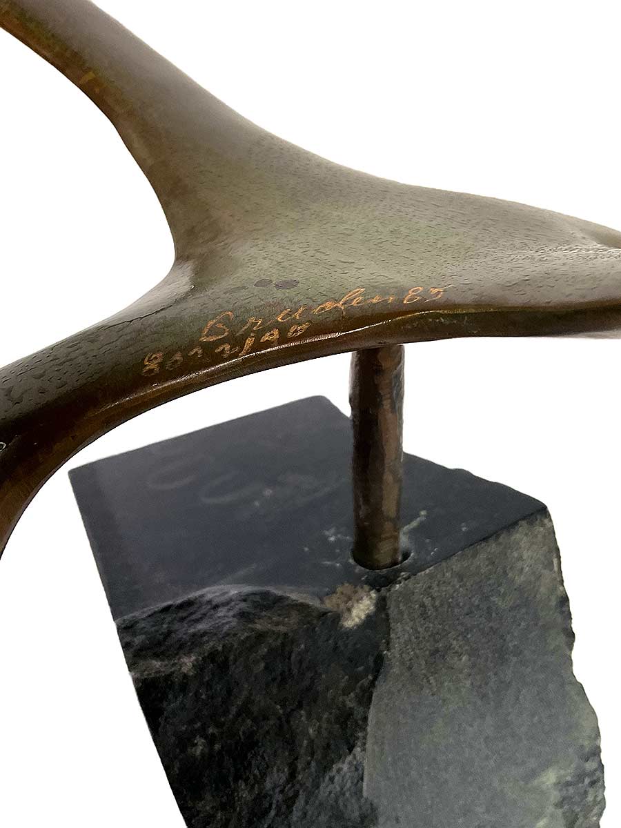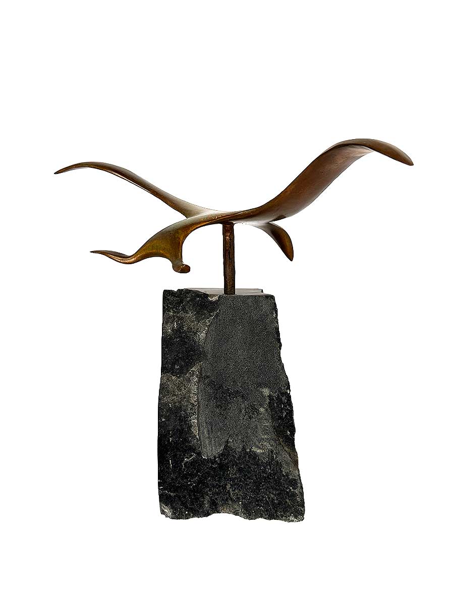 A beautiful bronze on solid granite base. Perfect for executive office, bookshelf or beach home. A nicely done bronze Sea Gull in Flight by the artist Bruden (ttb) on a square shaped granite base. This beautiful contemporary sculpture is now available from SculptureCollector.com where unqique and collectible sculpture is both bought and sold in a secure and private manner worldwide.