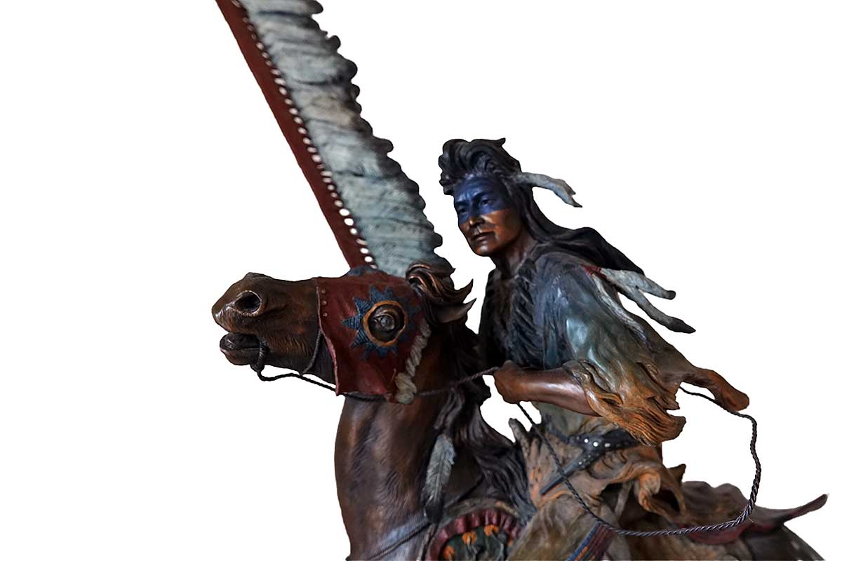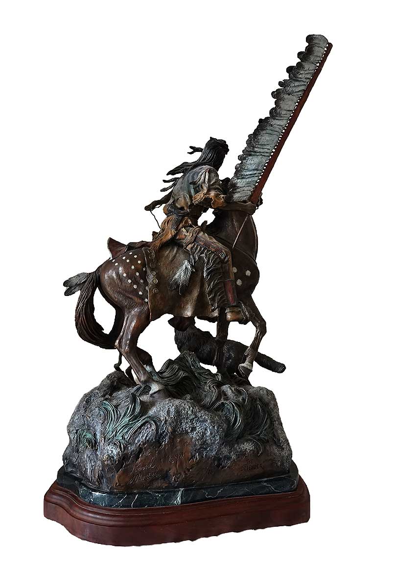 “The Defender” a limited Edition bronze sculpture of a Native American Warrior Chief in full dress regalia on horseback by noted sculptor David Manuel. The Defender is now available through SculptureCollector.com where unique and creative sculpture of all most all types is both purchased and sold in a secure and private manner globally.