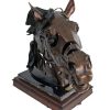 War Pony is shown with three coups or successful conflicts as Sioux warriors used their artistic sense to portray their personal history on their horses. The sculptor chose to model only the head of the horse to convey motion.
