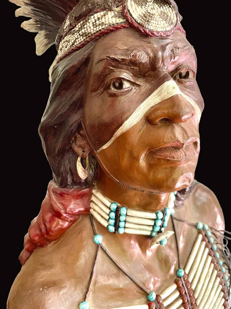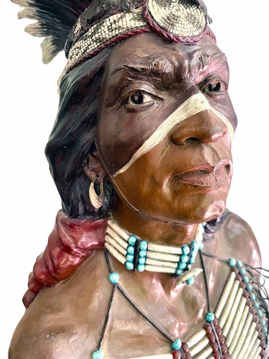 Proud Race” a limited Edition bronze sculpture of a Native American Indian Chief in full dress regalia by noted sculptor Elie Hazak. Proud Race is now available through SculptureCollector.com where unique and creative sculpture of all most all types is both purchased and sold in a secure and private manner globally
