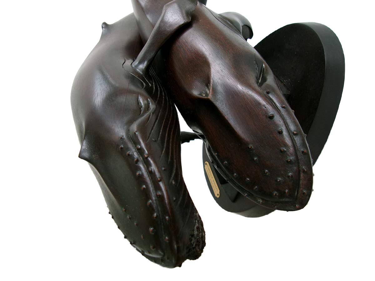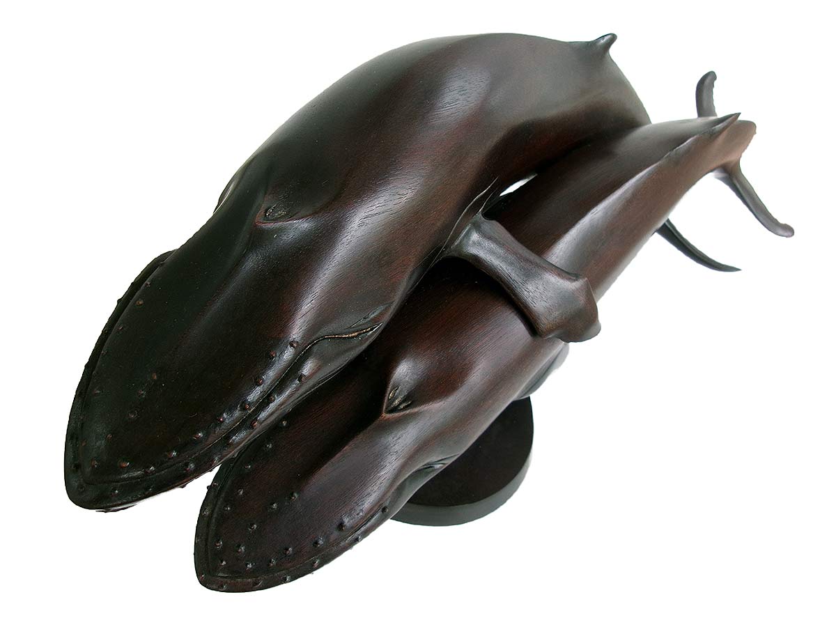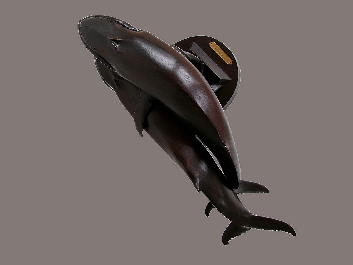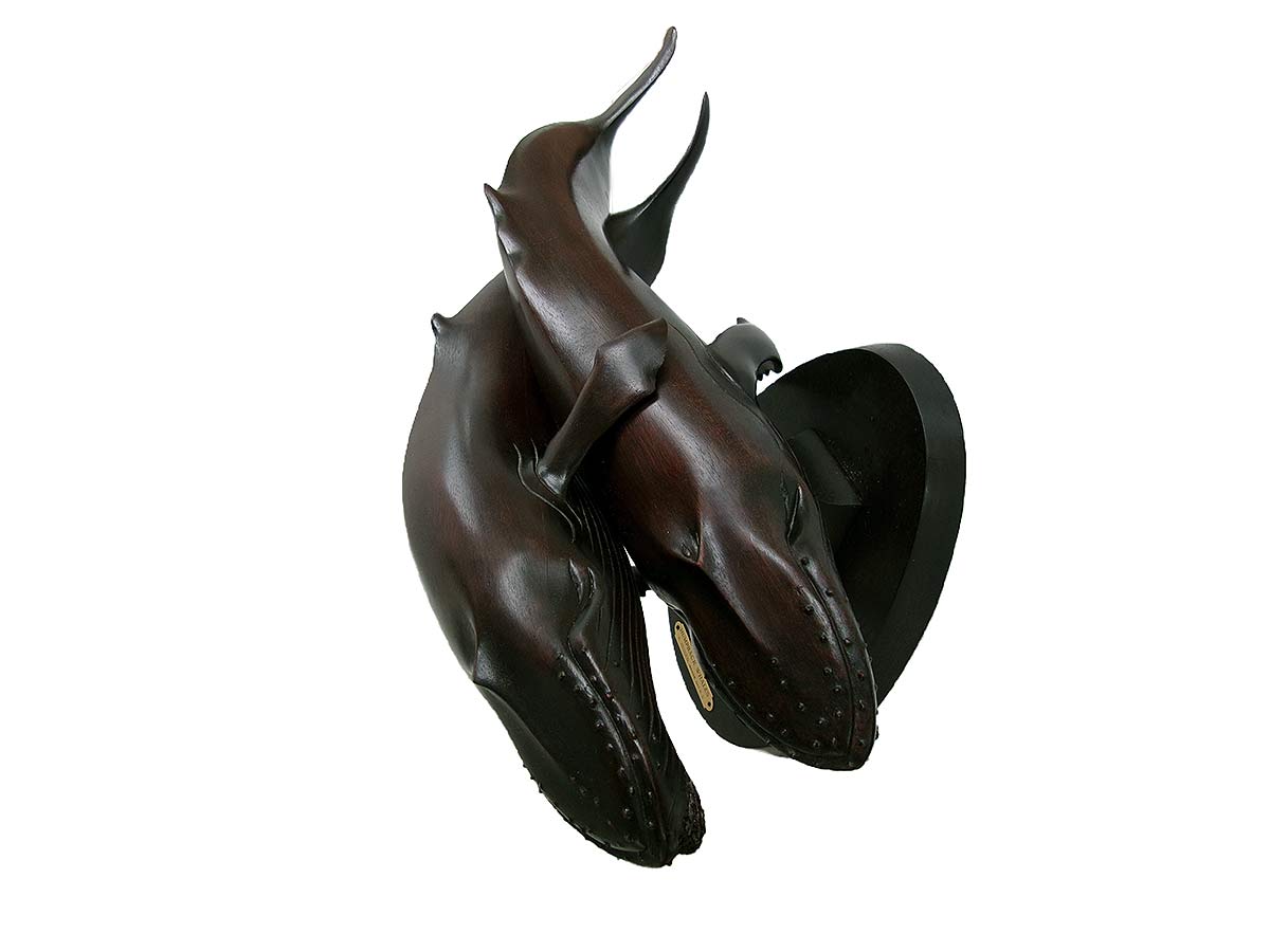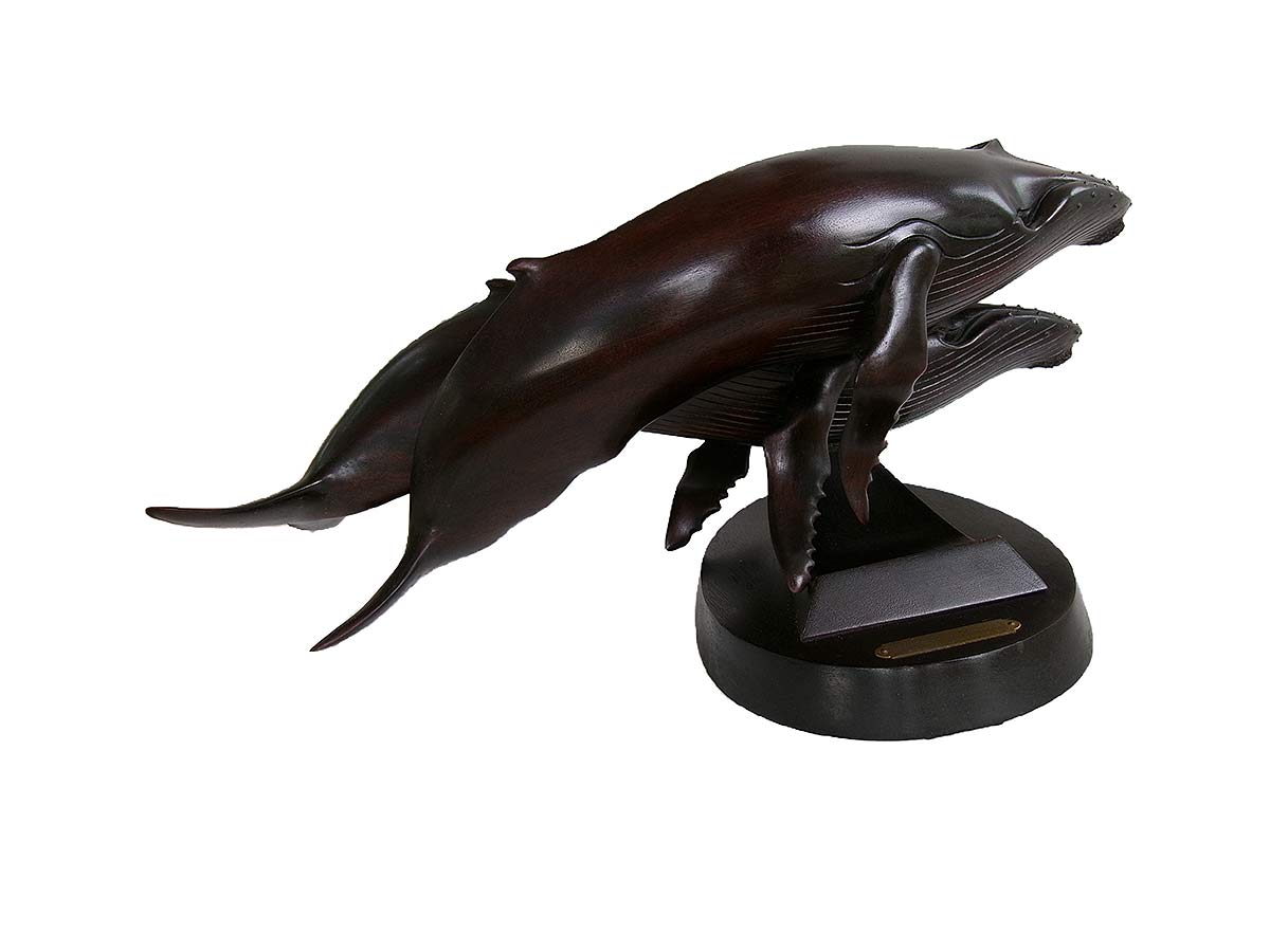 Mahogany wood carving of Humpback mom and calf, titled Humpback Whales. Purchased directly from the artist Ron Redden while in Nova Scotia. Excellent condition. This unique and beautiful carved Mahogany sculpture is in excellent condition and is now available from SculptureCollector.com, where unique and creative sculptures with a message are both purchased and sold securely and privately worldwide.