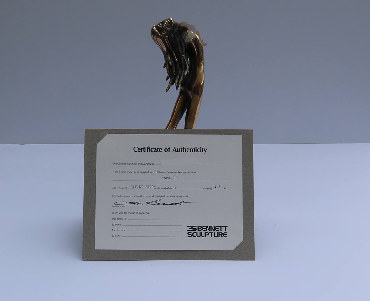 Tom Bennett bronze sculpture is recognized and collected worldwide. This sculpture titled “Spring” is another Beautiful Woman.