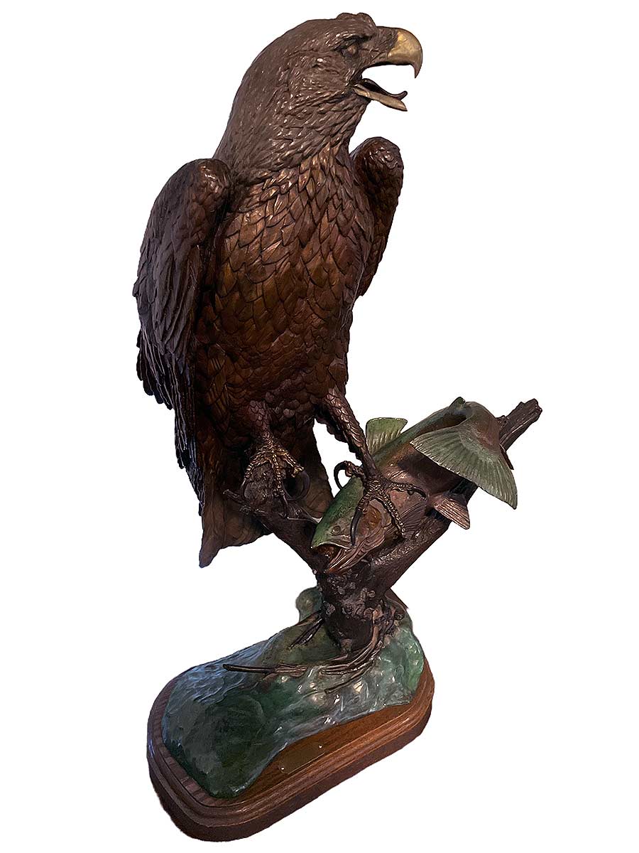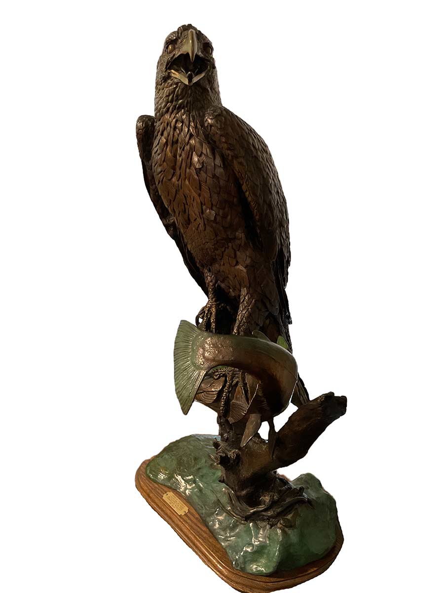 Americana at its best – Bronze sculpture of an Eagle Fishing by the noted sculptor-artist William Hald, titled “The American Fisherman“. Available now from SculptureCollector.com where creative and collectible sculpture is bought, sold, resold, brokered, and listed in a secure and private manner globally.